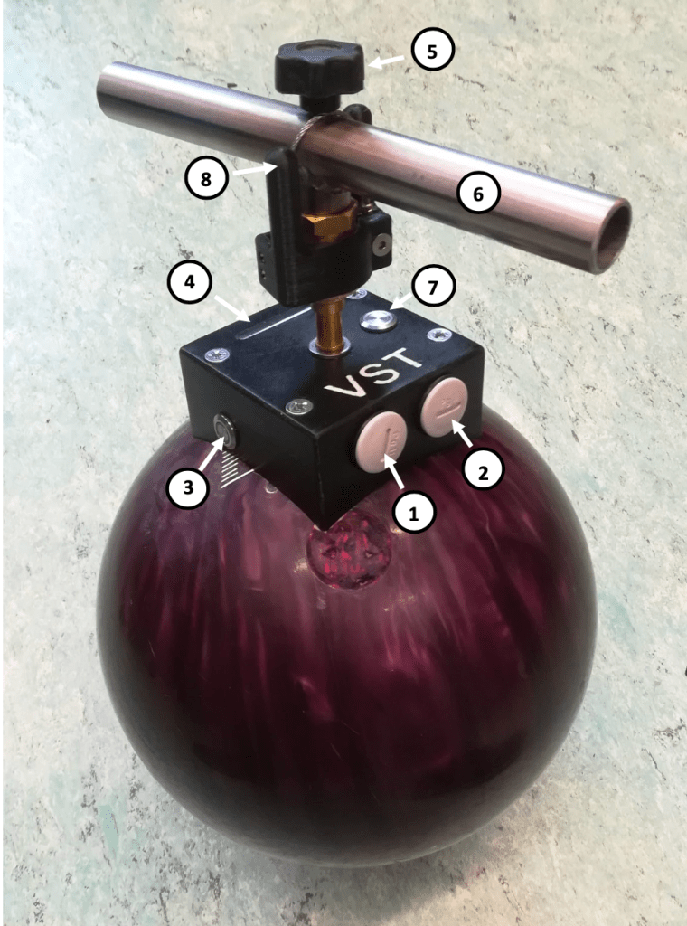 The Vienna Surface Tester (VST) consists of a sphere weighing 6.15kg and 20.4 cm in diameter that is dropped from varying heights between 5cm and > 80cm onto turf or sport surfaces to determine the mechanical properties of the surface. The internal electronics measure and record impact velocity,